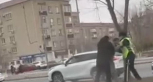Драка пешехода с полицейским в Атырау попала на видео