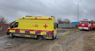 Сотрудники МЧС пришли на помощь застрявшей карете скорой помощи.