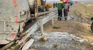 Автоцистерна с нефтепродуктами перевернулась в Мангистау