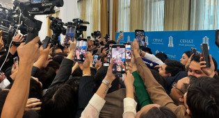 Его появление вызвало ажиотаж: журналисты буквально окружили дипломата, стараясь задать свои вопросы. В коридорах образовалась