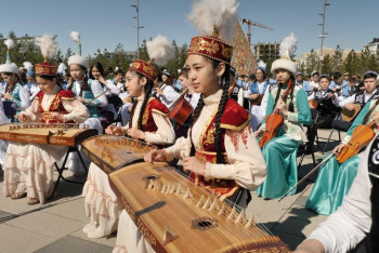 В Астане школьники исполнили кюй «Алтын ұя» на площади EXPO. В акции приняли участие около 2000 человек.