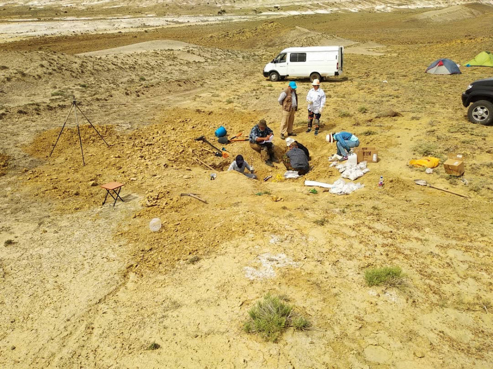 "Труднейшую работу по препарированию проделала Жамиля Якупова, аспирант кафедры палеонтологии Казанского Университета, которая так же участвовала в раскопках. На втором видео - момент обнаружения скелета. На последующих фото и видео дальнейшая хронология событий, включая раскопки (в которых к сожалению я не смог поучаствовать из-за рабочего графика), а так же процесс препарирования и создания копий. В раскопках участвовали специалисты Казахстана и России", - написал палеонтолог.