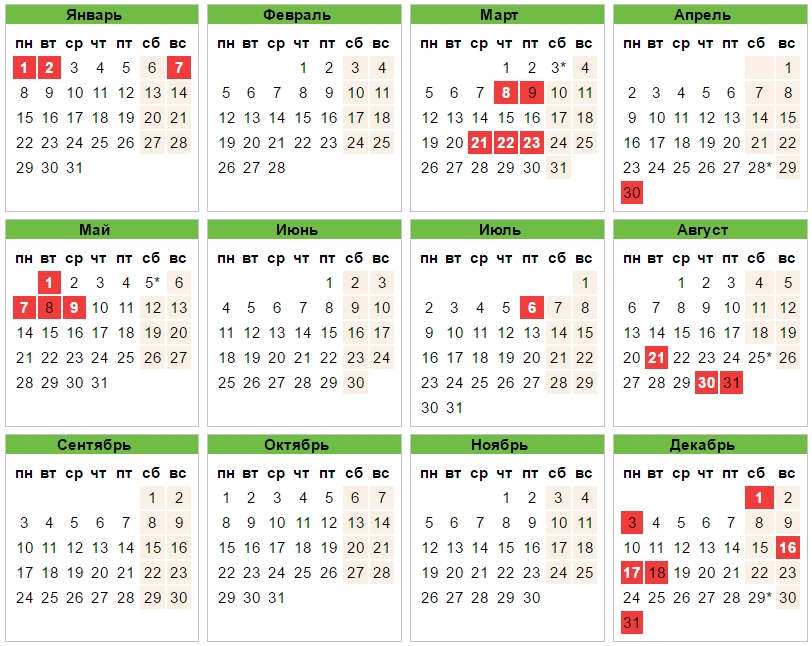 Первый день Курбан айта, отмечаемого по мусульманскому календарю, 7 января - православное Рождество являются выходными днями.
