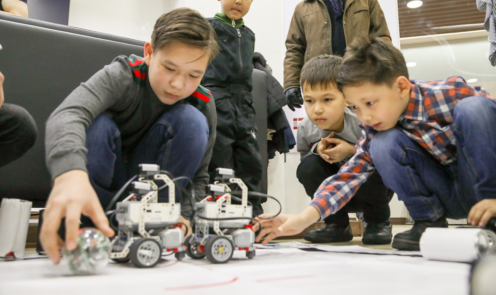 Робота назвали "Куаныш" разговаривает на русском и на английском, в скором будущем его "обучат" и казахскому языку.