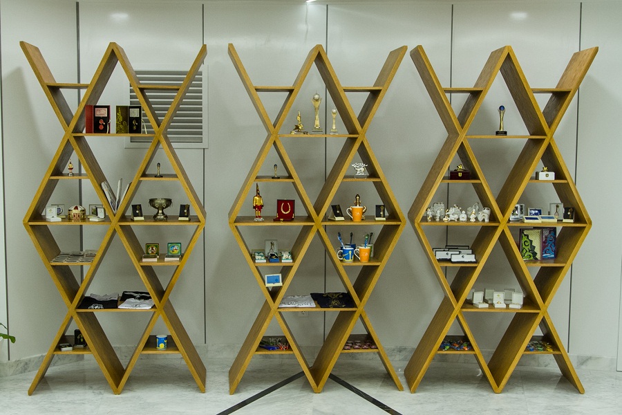 В здании «Байтерека» также открылась галерея современного искусства с отдельным LED-экраном. В фойе монумента установлен гнутый дисплей. Общий вид здания дополняет оригинальная хрустальная люстра. Она выполнена из чешского хрусталя в форме летающих мифических птиц.
