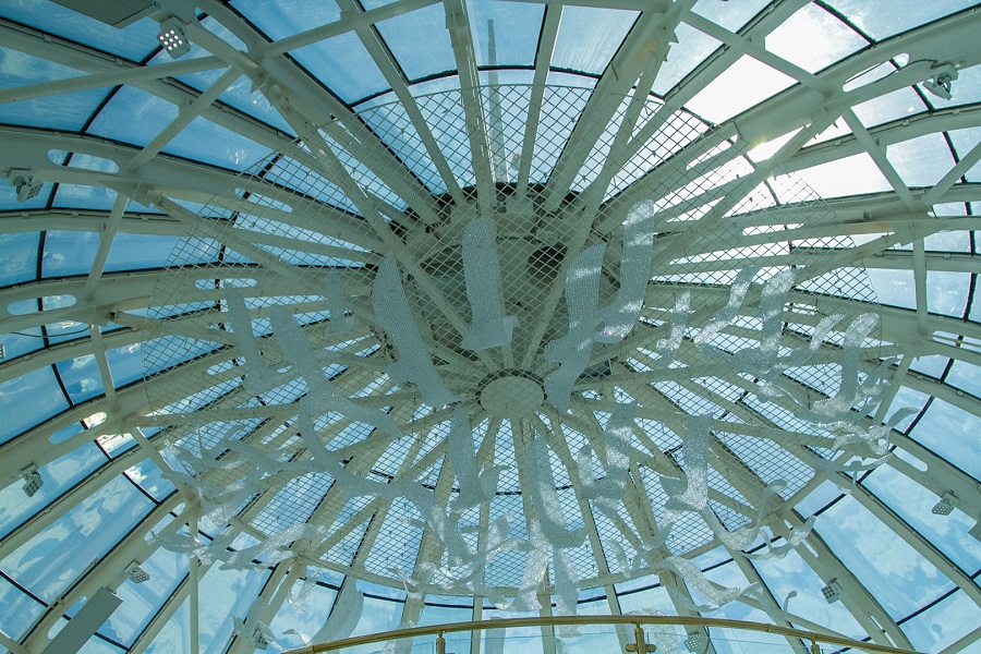 Стоит отметить, что цветовая гамма монумента осталась прежней – белый и золотистый цвета. Осталась неизменной и композиция «Аялы алакан» с оттиском правой руки Президента, а также деревянный глобус с автографами представителей 17 религий мира.