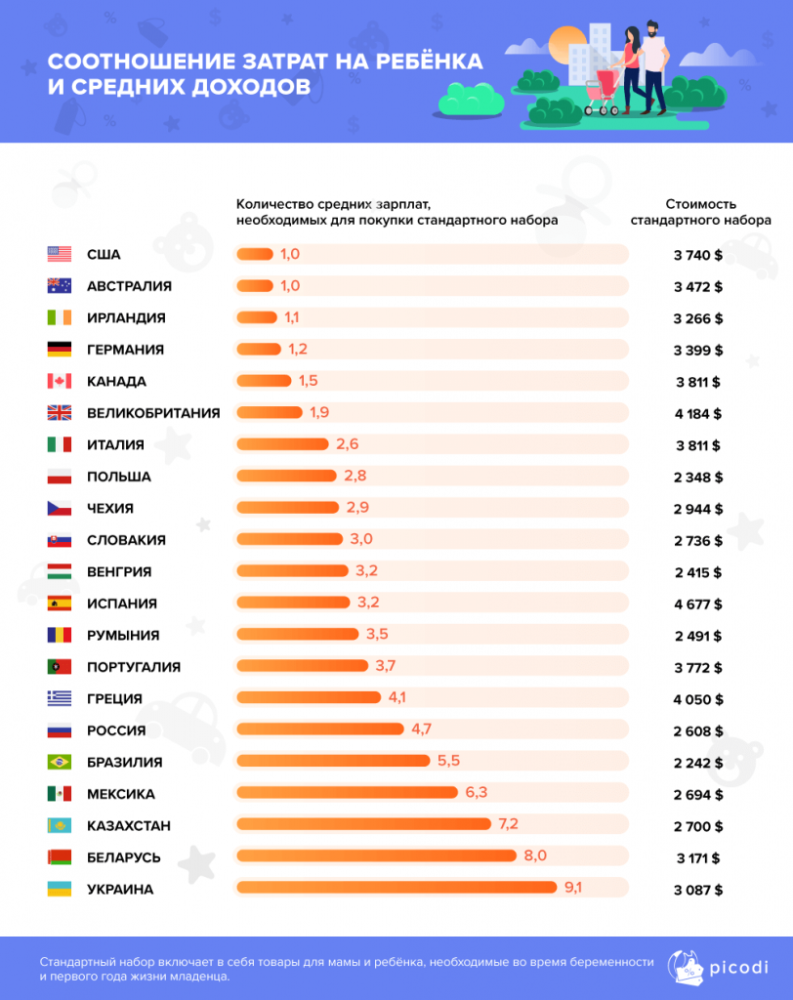 Для сравнения, в Германии соотношение базового набора к средней оплате труда равно 1,2 заработной платы, а в Польше — 2,8. В соседней России иная ситуация: 4,7 зарплаты.