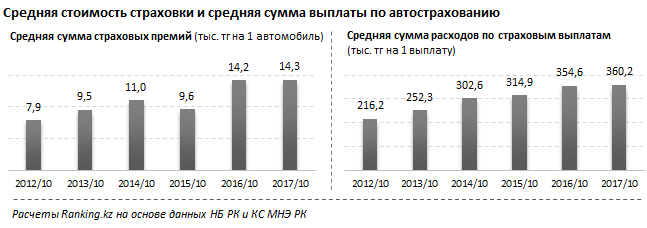 В среднем на каждую выплату при наступлении страхового случая по ОГПО автовладельца страховые компании в настоящее время на них тратят по 340 тыс. тенге, а по АвтоКАСКО - по 477,6 тыс. тенге. Сумма расходов по страховым выплатам в автостраховании растет, несмотря на замедление роста сбора премий.