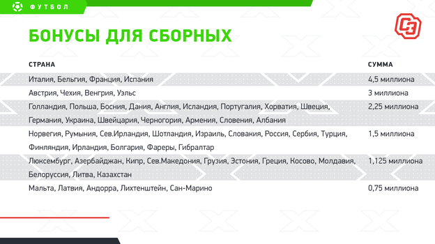 Бонусы за выступление в Лиге Наций составляют: