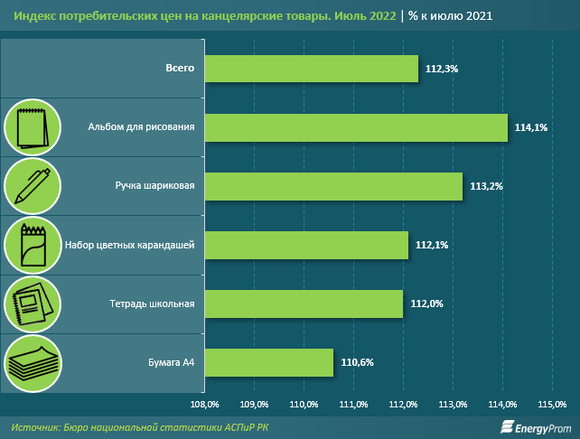Канцелярские товары в июле подорожали на 12 процентов за год, сообщает BaigeNews.kz со ссылкой на Energyprom.kz