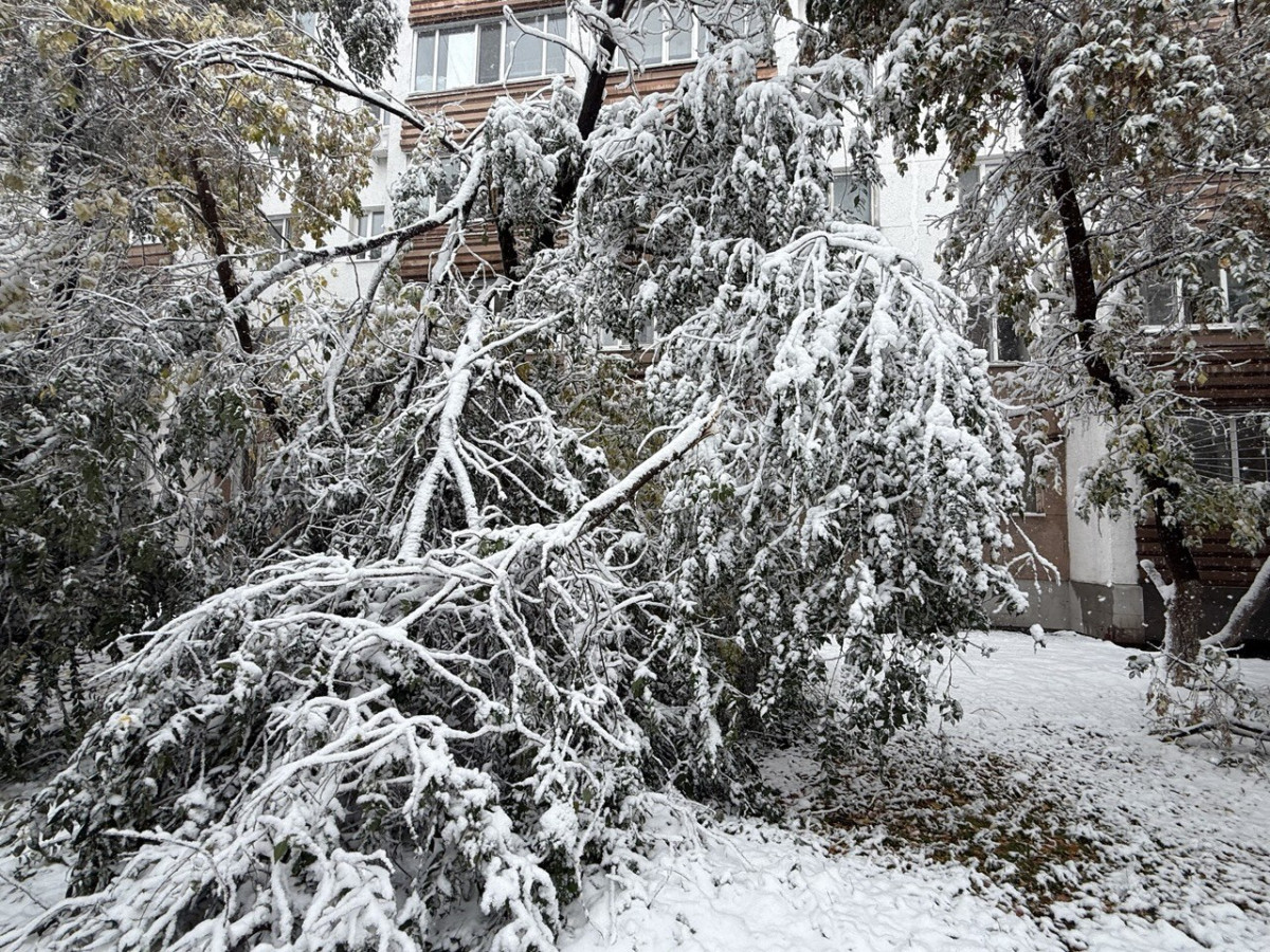 "У меня под окном карагач прямо на глазах треснул и сломался! Столько лет стоял — и не выдержал. А ведь это крепкое дерево. Живу в Костанае более 60 лет — такого не припомню в сентябре", — делится жительница Светлана Тимчук.