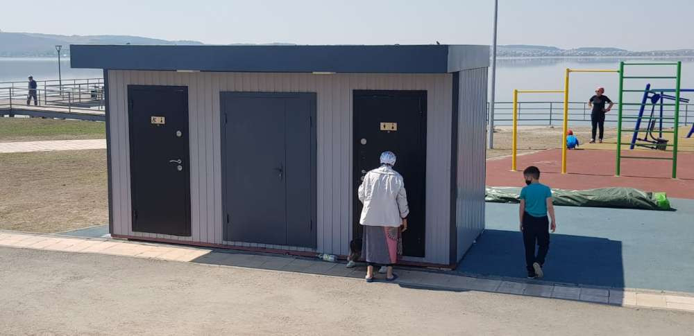 Фирма-застройщик обещала пять биотуалетов на набережной. Мы насчитали два стационарных. Но они до сих пор закрыты. Видимо, потому что объект еще не сдан.