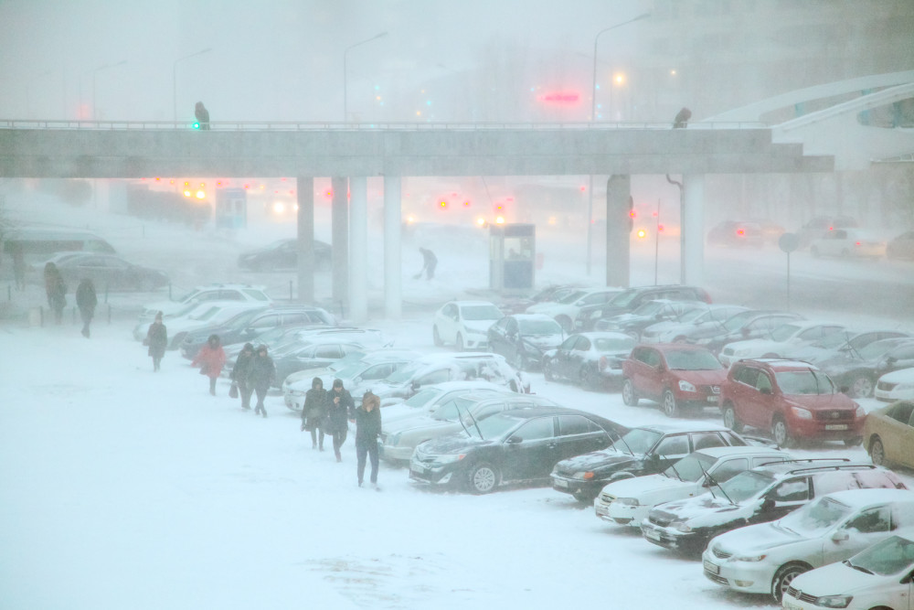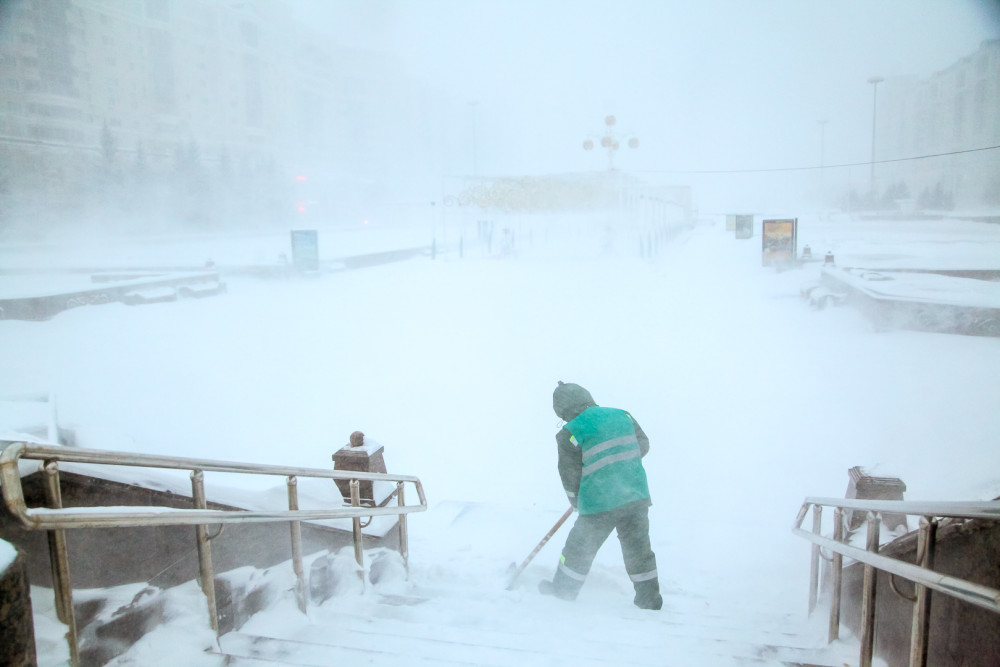 В городе наблюдается транспортный коллапс. Больше 1300 единиц спецтехники убирает снег в Астане. Также около 2000 рабочих вручную очищают дороги от снега. Закрыт выезд для всех видов транспорта из Астаны и не работает международный аэропорт.