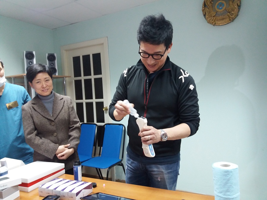 Меморандум о сотрудничестве в сфере здравоохранения с Пусанской группой компаний был подписан еще в ноябре прошлого года президентом РК Нурсултаном Назарбаевым в ходе казахстанско-корейского делового форума в Сеуле. Сегодня в рамках меморандума партнеры из компании «Корея телеком» привезли два аппарата мобильной медицины для актюбинской поликлиники безвозмездно. Информацию о состоянии внутренних органов можно узнать через планшет и датчик размером в смартфон. По словам главного врача актюбинской поликлиники, данное оборудование незаменимо, так как не всегда и не везде можно установить стационарное ультразвуковое оборудование. На помощь приходит переносной УЗИ сканер, который работает автономно.