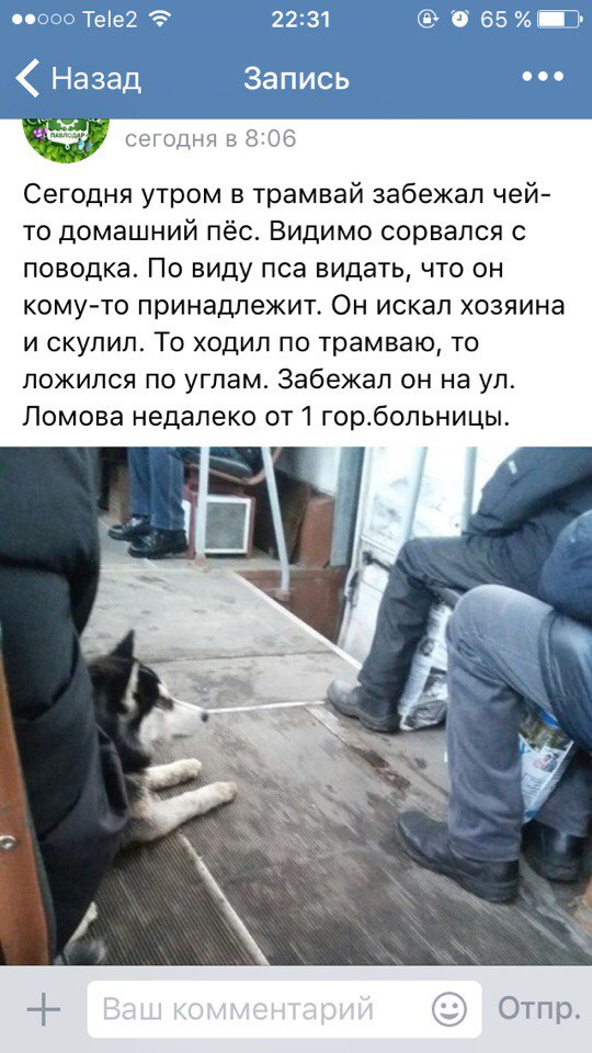 «Мне позвонили в семь утра и рассказали, что видели собаку в трамвае, - рассказывает Мария. – Объявление разошлось по соцсетям. Я встала, вызвала такси и забрала собаку. Поскольку в нашем приюте давно нет свободных мест, отвезла домой и закрыла на балкон. В соцсетях написала: «Хозяева, заберите свою живность, я за свою живность опасаюсь! Моя кошка, крыса, черепаха и хомяк не одобряют эту гостью». Через пару часов мы нашли хозяев, которые компенсировали расходы на такси, забрали собаку.