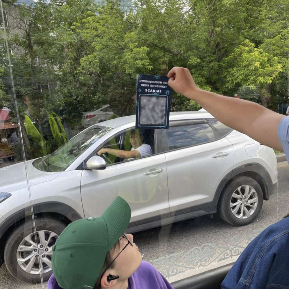 QR-код ведёт на сомнительную страницу "Криптовалютная биржа НБК". В Управления городского планирования и урбанистики Алматы назвали это объявление несанкционированной рекламой.