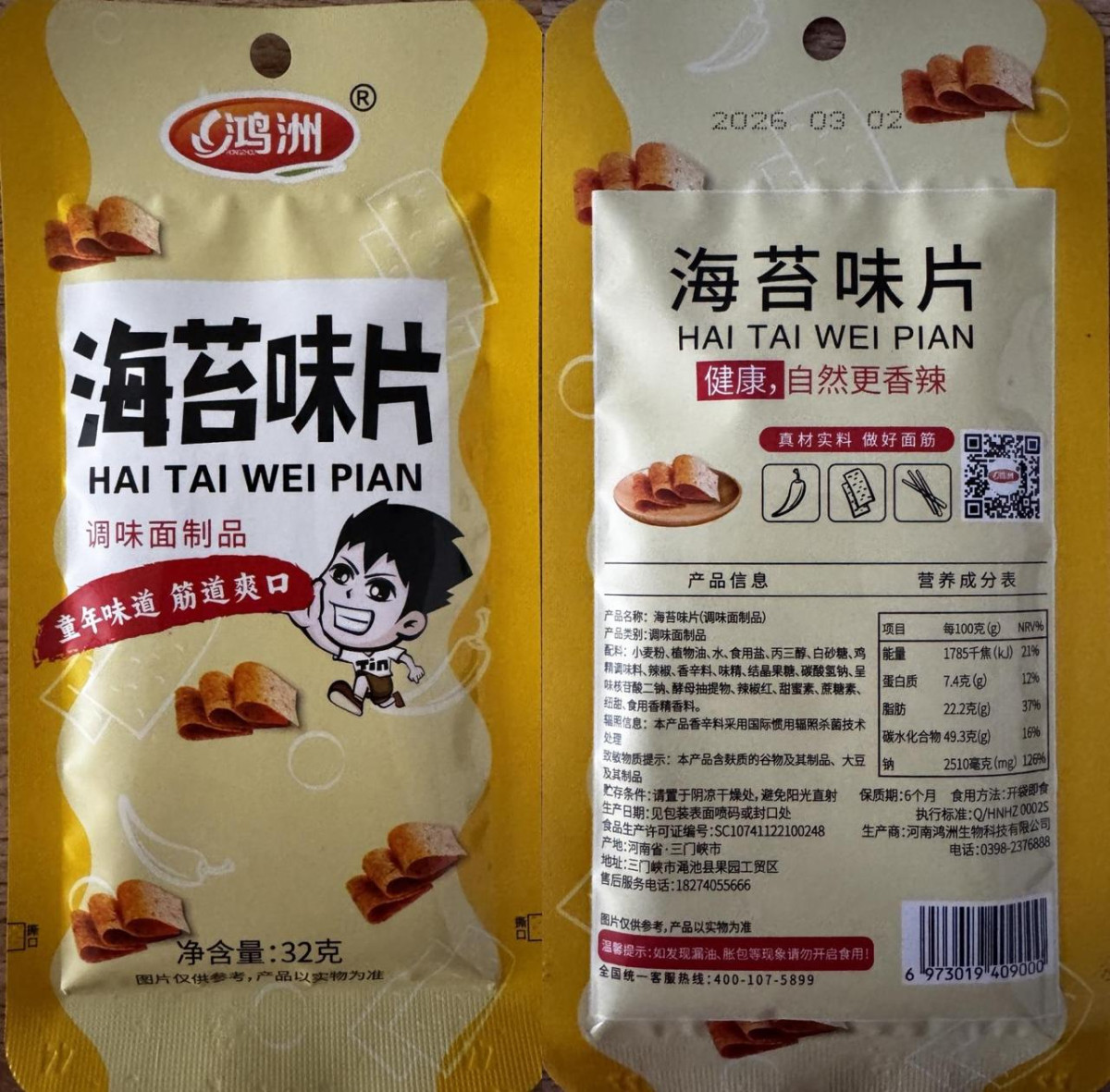 Под запрет также попали снеки бренда Huang Peng Fei со вкусом краба, лобстера и креветок, поскольку на упаковке не было указано наличие сахара и подсластителей.