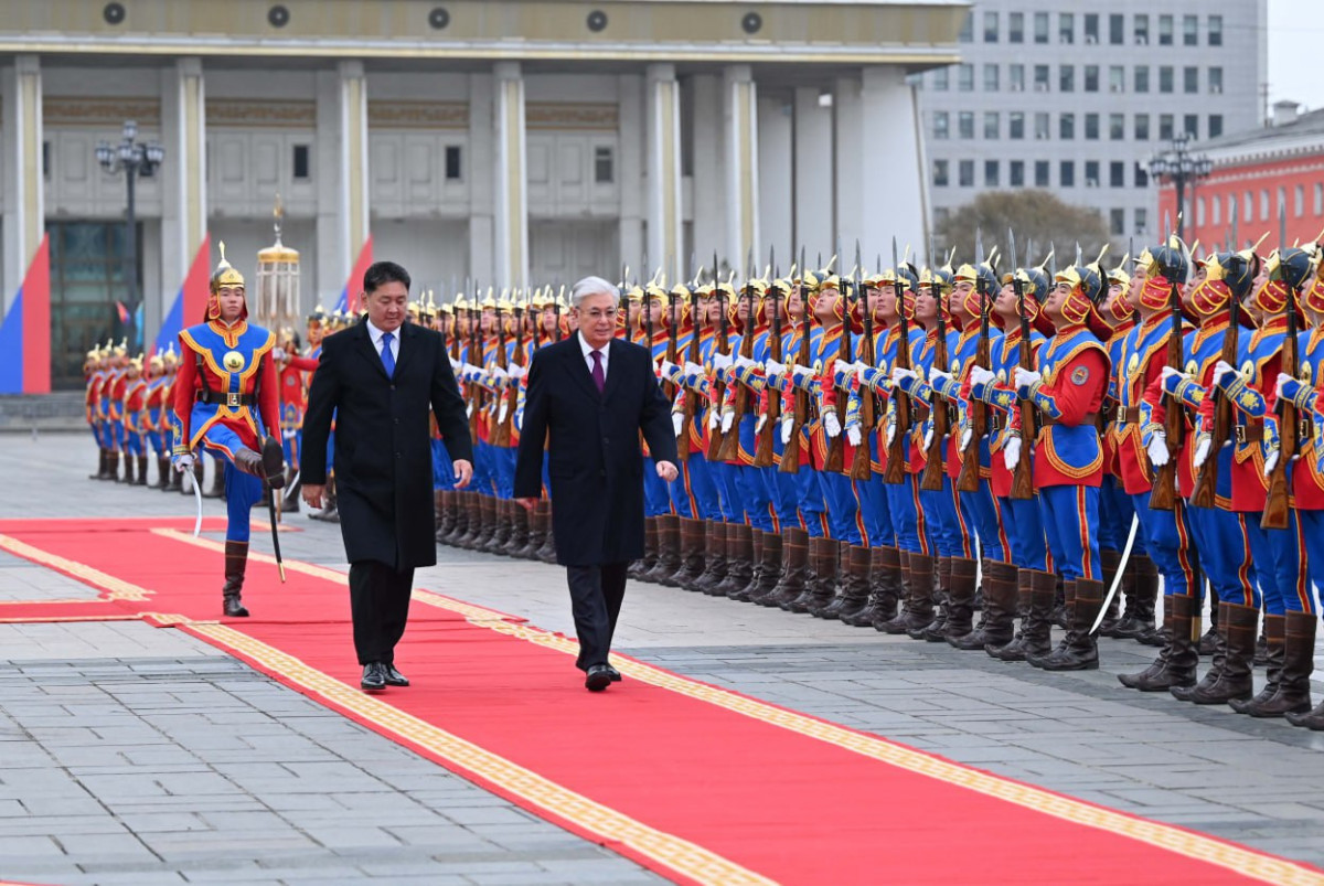 Состоялась официальная церемония встречи Касым-Жомарта Токаева, прибывшего в Монголию с государственным визитом, передаёт BaigeNews.kz.