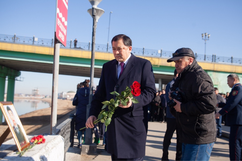 Жители Атырау возложили цветы на месте, где, спасая женщину, утонул 25-летний сержант полиции Шалкар Акымбеков, передаёт BNews.kz со ссылкой на Региональную службу коммуникаций Атырауской области..