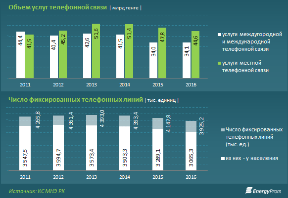 Абонентская плата за телефон, с учетом падения спроса на услугу, не увеличивалась с марта 2013 года, когда последний раз выросла с 839 до 1006 тенге в месяц.