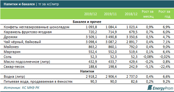 В сегменте бакалейных товаров и напитков заметного месячного роста (более чем на 1%) не наблюдалось, а некоторые товары, напротив, упали в цене: например, сахар подешевел на 5,1%.