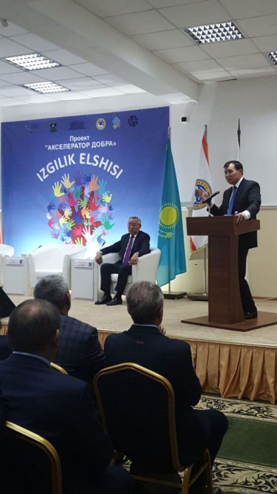 "Акселератор добра" - это проект, который включает в себя группу волонтеров из числа студентов движения "Ізгілік елшісі" - "Послы добропорядочности".
