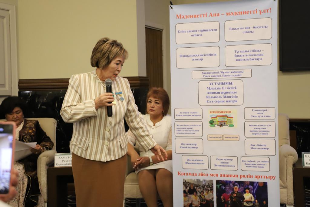 В выступлении спикер раскрыл всё социальное и культурное многообразие работы Совета матерей, в активе которого имеются такие проекты, как "Сказки народа Казахстана" и Khancast, направленные на снижение дефицита казахскоязычного контента в социальных сетях, работа с Центром поддержки многодетных матерей "Шанырак" в Караганде, с центрами "Бақытты жанұя", "Активное долголетие", TEN QOGAM в Шымкенте.
