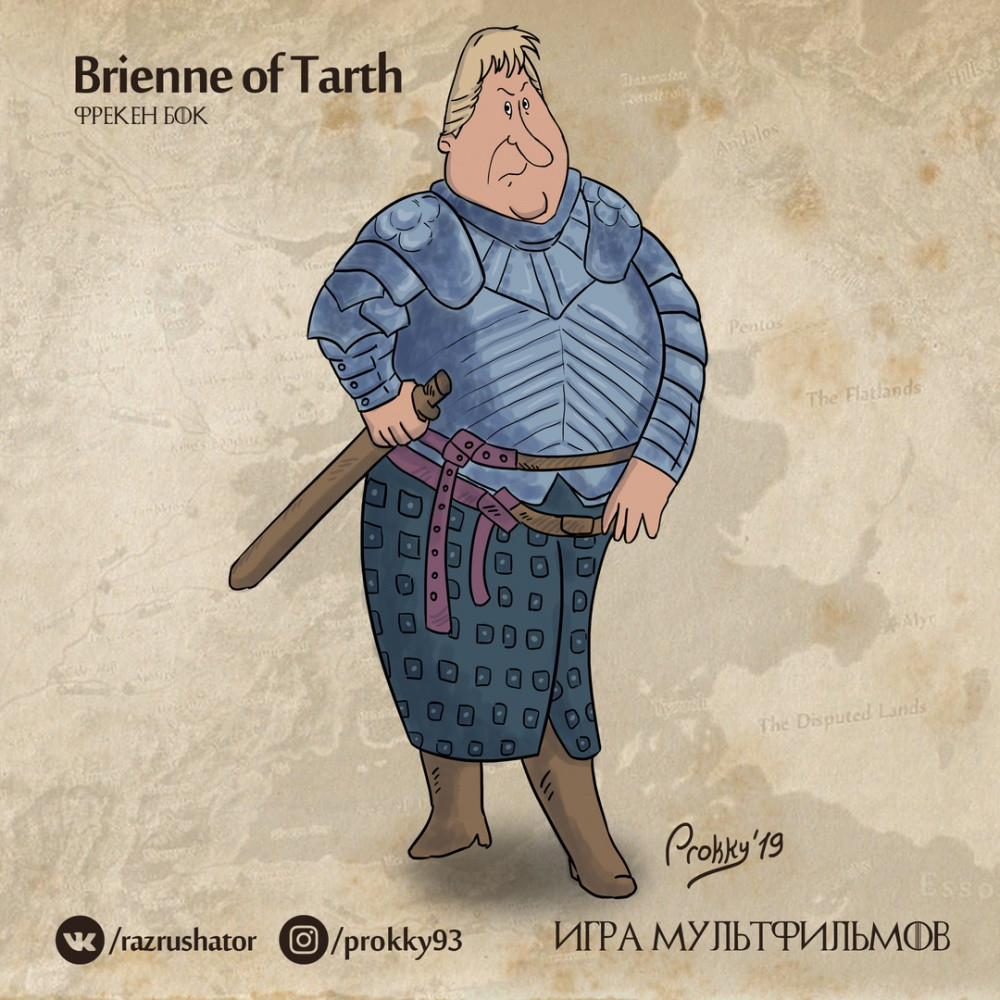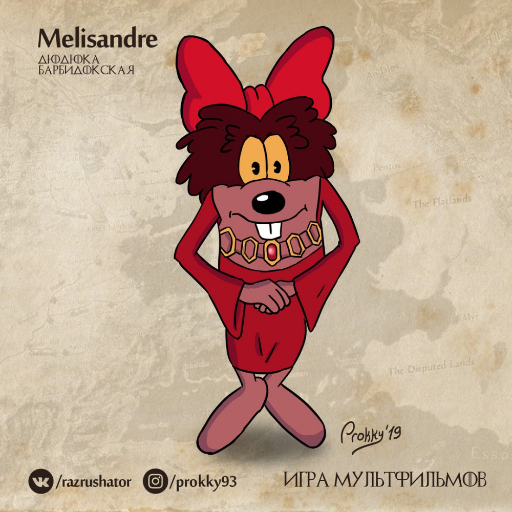 Прокопий опубликовал на своей странице в социальных сетях подборку иллюстраций, на которых он изобразил героев советских мультфильмов в образах персонажей из "Игры престолов".