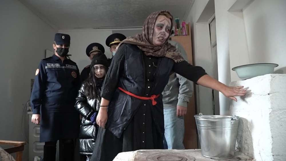 При проведении профилактических рейдов и инструктажей в жилом секторе, во избежание случаев отравления угарным газом и пожаров, специалисты ДЧС ВКО облаченные в костюмы зомби, рассказали, как опасно не ремонтировать вовремя печь и нарушать правила пожарной безопасности.
