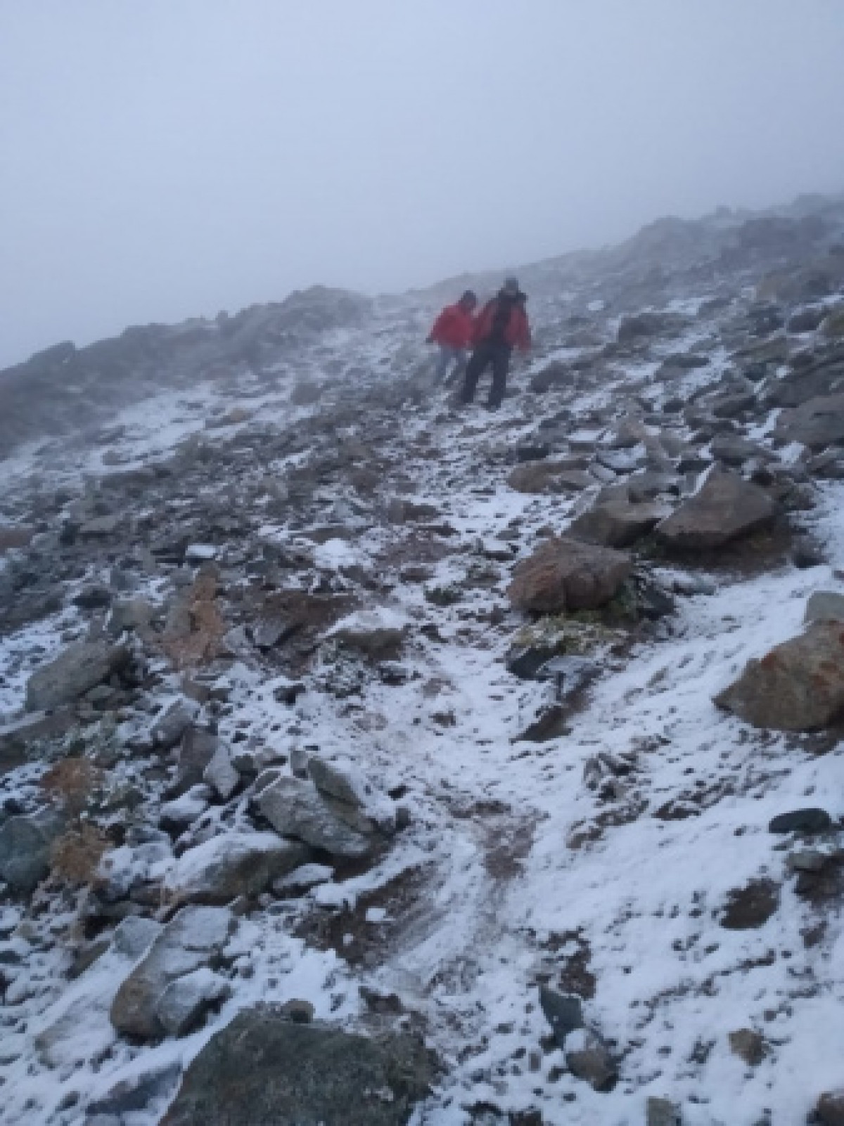 По прибытию в район Большого алматинского озера 10 спасателей и один кинологический расчета выдвинулись пешим ходом на поисково-спасательные работы, шел мокрый снег. Особенность данной местности в том, что вершины состоят из скалистых склонов, перемежающихся с сыпухой (мелкий щебень по которому сильно "ползет" стопа). В темноте преодолевать такой рельеф сложно и опасно. Помимо того, что мокрые камни скользкие, есть угроза, что они начнут осыпаться вниз.
