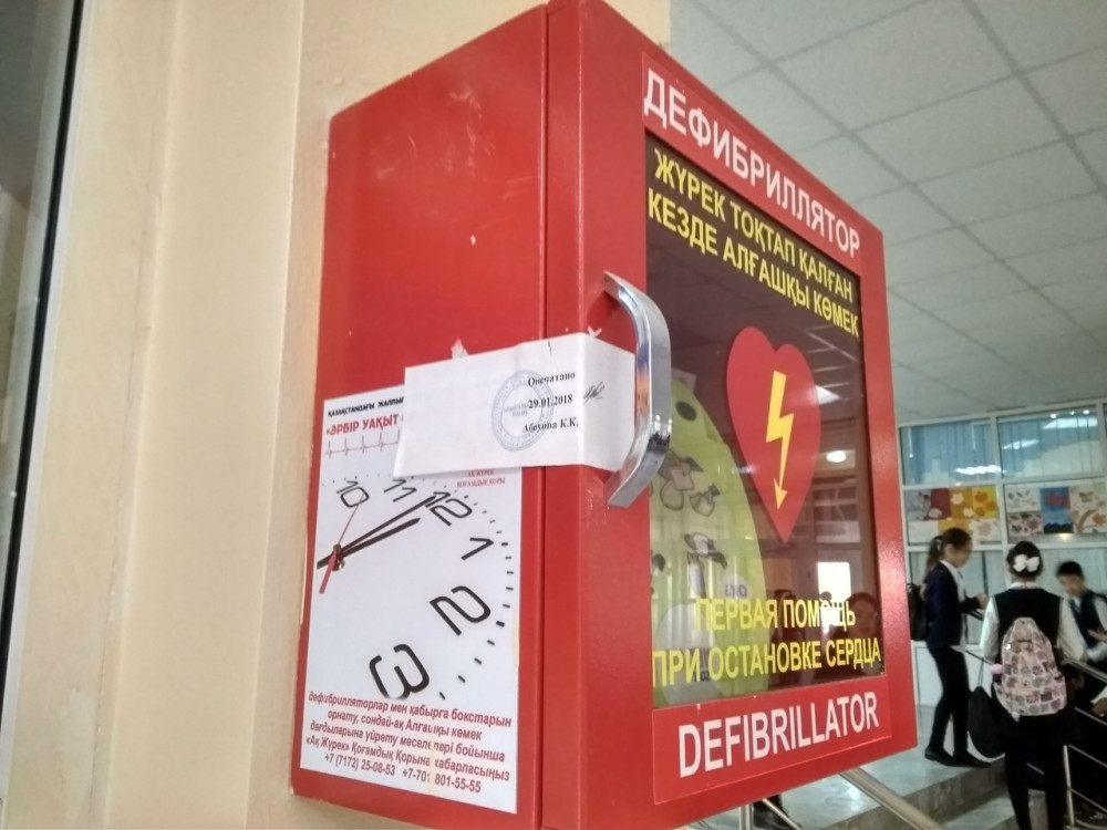 "В нашей школе обучается 3700 человек. И пока на четыре блока школы установлен один переносной дефибриллятор. Надеюсь, что в скором времени мы установим шкафчики на каждом этаже, в каждом блоке нашей школы. Самое главное, что учебно-педагогический состав, техперсонал прошли обучение по технике использования аппарата и оказанию первой доврачебной помощи. В этом году планируем провести повторное обучение с обновленным составом учителей. Важно, чтобы в первую очередь родители обращали внимание на здоровье и самочувствие детей. И было бы хорошо, чтобы этими шкафчиками пользовались как можно реже", – рассказала заместитель директора по учебно-воспитательной работе Куралай Абеуова.