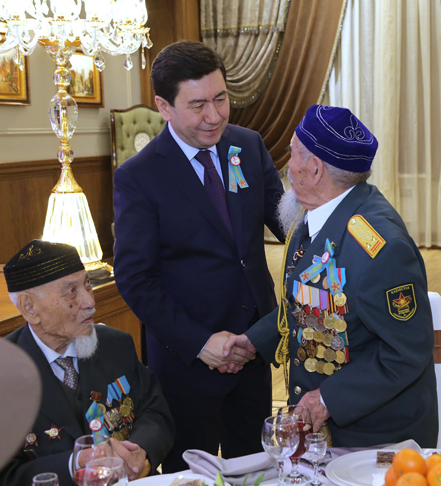 "Мы каждый год с особым трепетом ждём этой встречи. Я хотел по традиции провести этот день с вами. Как сказал Бауржын Момышулы: "Память о войне - это не только память, это скорбь и боль, это память о подвигах, о битвах, это память о победе". День Победы для каждого казахстанца - личная история, у каждого из нас есть близкие, которые воевали или работали в тылу. И сегодня, чествуя вас, мы отдаём дань памяти и своим близким. Я хотел бы вам сказать спасибо за то, что вы подарили нам это мирное небо и мы, ваши потомки, живём в мирной стране, - сказал глава региона в своей речи.