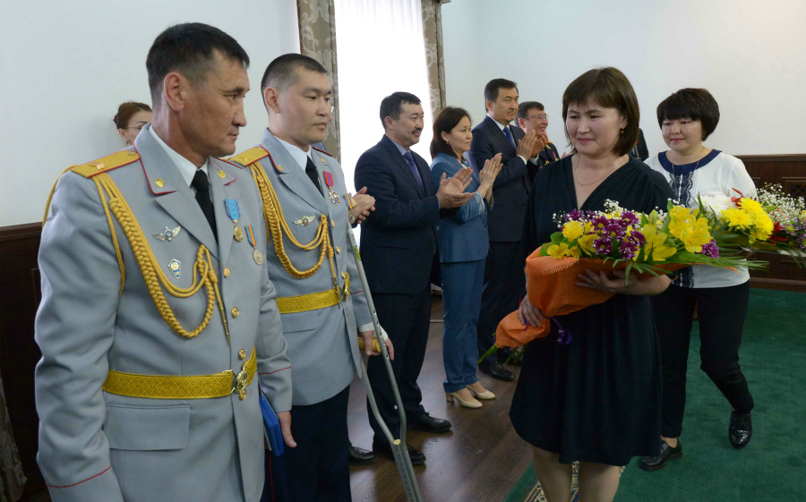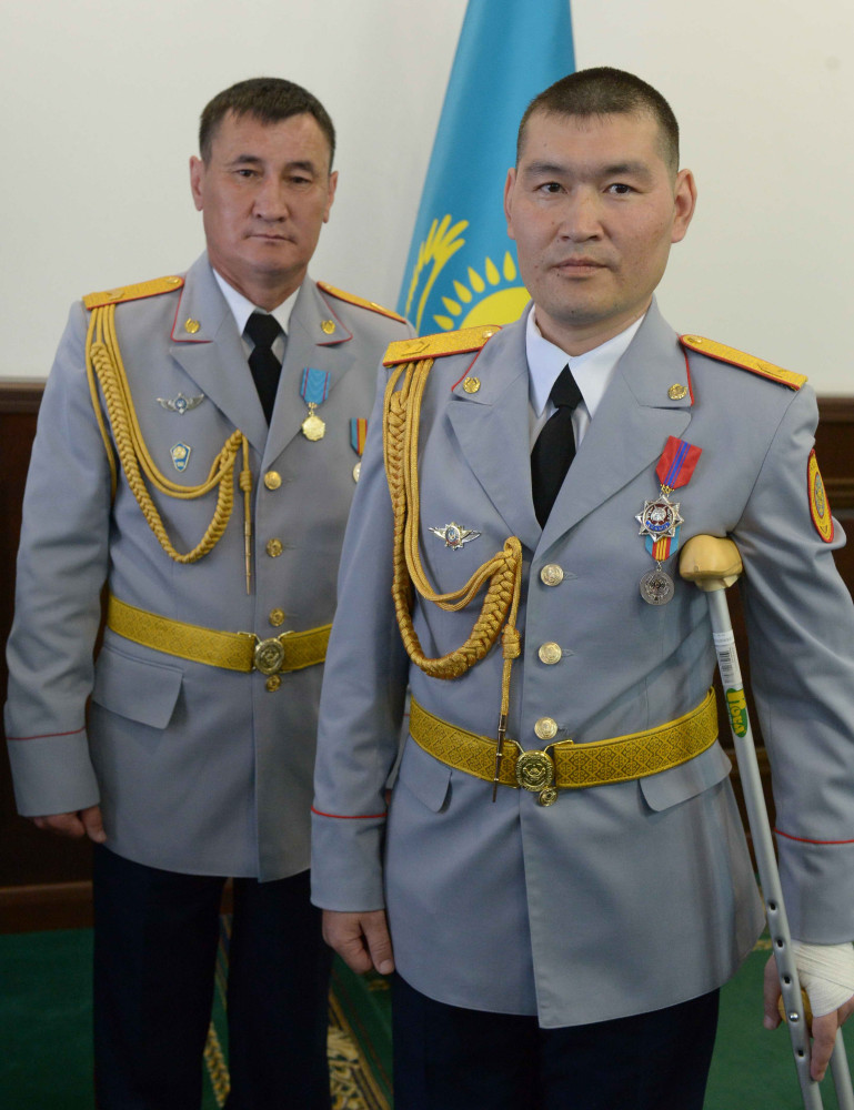 Старший сержант полиции Мурат Нурсеитов на церемонию награждения прибыл на костылях. Мужчина еще не восстановился после той аварии, в момент которой он находился за рулем, и которая могла закончиться трагически.