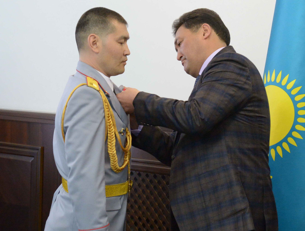 "Мы гордимся нашими полицейскими, они - настоящие защитники, которые охраняют права и порядок. Хорошо, что сегодня наши герои живы и здоровы. Хочу поздравить весь личный состав департамента внутренних дел Павлодарской области с наступающим Днем защитника Отечества. Всего вам наилучшего", - сказал аким области.