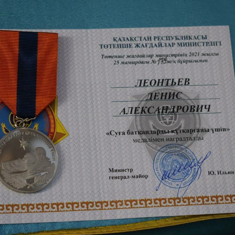 Житель поселка Солнечный в Павлодарской области Денис Леонтьев получил награду от главы МЧС, генерал-майора Юрия Ильина. Церемония прошла в акимате Экибастуза. Медаль от главного спасателя страны 30-летнему мужчину вручил начальник ДЧС Павлодарскрй области Жасулан Жумашев, передает "Павлодар день за днем".