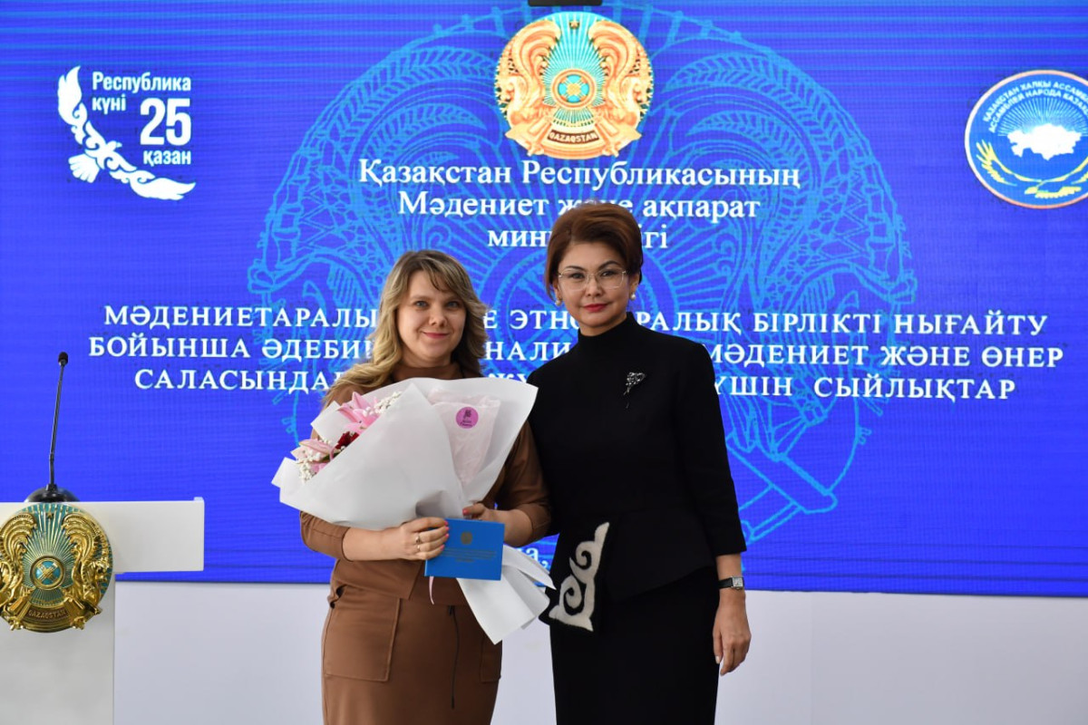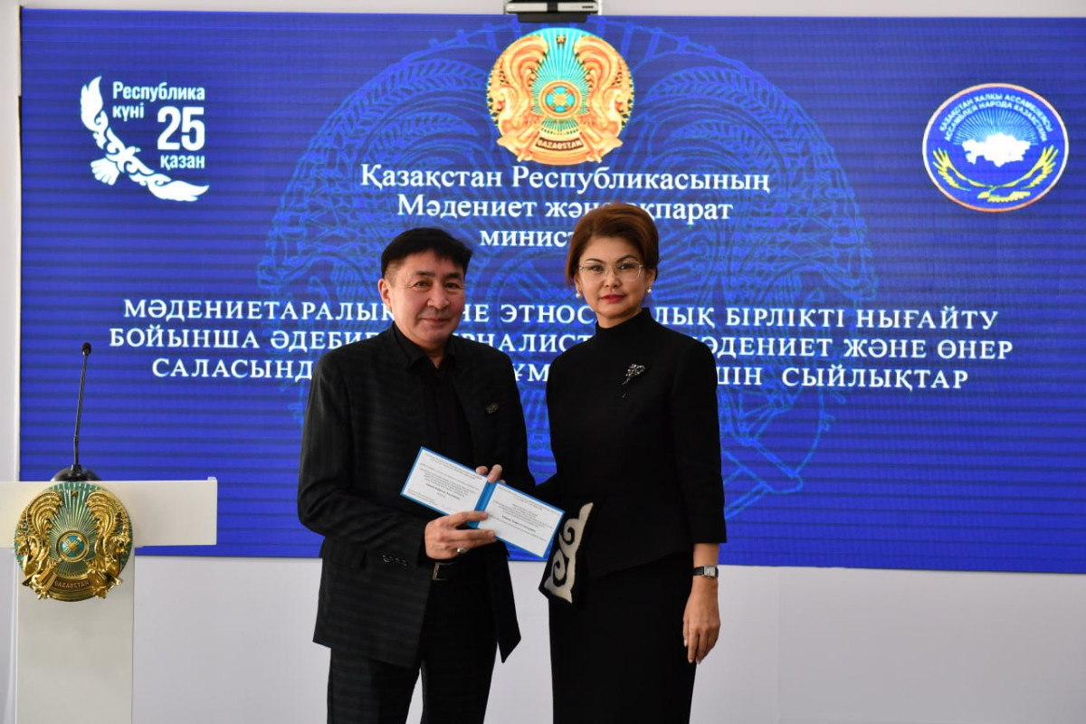 "В преддверии важного национального праздника, который несёт глубокий смысл для всего народа, мы с гордостью хотим отметить заслуги казахстанцев, внёсших вклад в укрепление межкультурного и межэтнического единства. Соответствующее поручение президент Касым-Жомарт Токаев дал на сессии Ассамблеи народа Казахстана в этом году. Были учреждены премии "за лучшие работы в области культуры и искусства" и "за лучшие работы в области литературы и журналистики". Сегодня впервые в истории нашей независимой страны мы вручаем их активным гражданам, которые усердно трудятся во благо укрепления единства государства", - подчеркнула Аида Балаева.