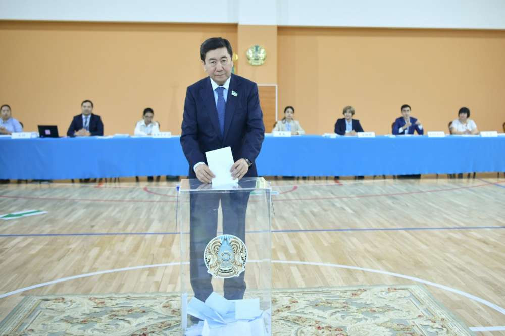 Спикер нижней палаты парламента отдал свой голос на избирательном участке № 110, который расположен в здании Национальной компании "Қазақстан темір жолы".