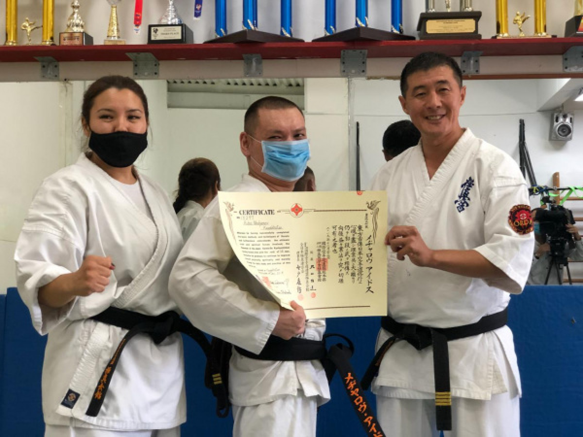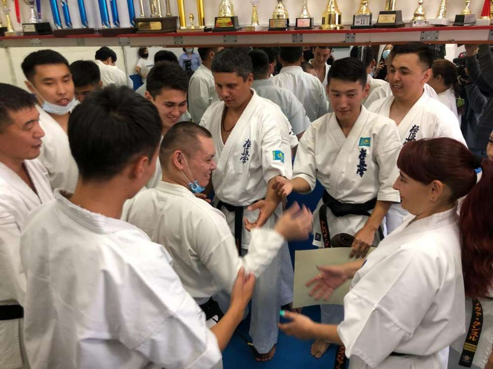 Черные пояса 10 сентября получили и другие каратисты. Один из них – Омирбек Альмагжанов – вспомнил, как спортсмены познакомились с Айдосом и приняли его в команду.