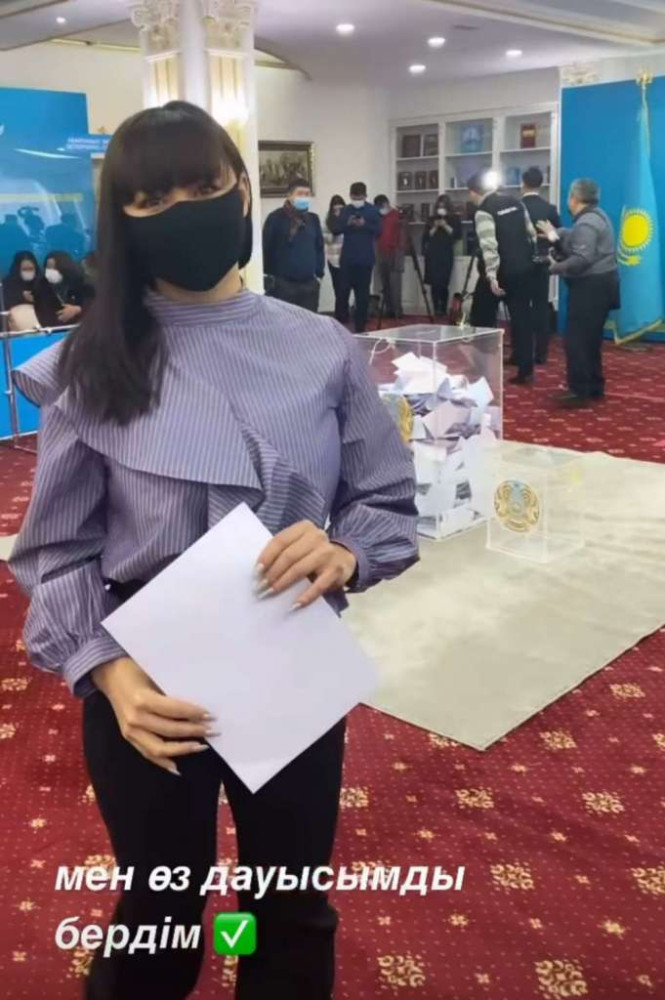 Проголосовали на выборах и некоторые казахстанские звезды эстрады. Так, к примеру, певица Мадина Садвакасова опубликовала у себя на личной странице в Instagram сториз, где она написала, что проголосовала на выборах.