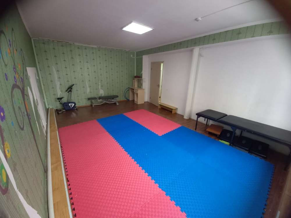 В зале занимаются дети фонда "Ерекше Өмір", который работает вот уже четыре года. Он создан для поддержки детей с диагнозом аутизм и другими интеллектуальными расстройствами. Иногда помещение использовали как актовый зал.