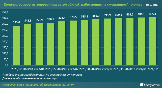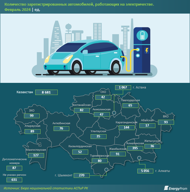 Впрочем, автоэксперты отмечают, что, помимо 8,7 тыс. авто с электродвигателем, автопарк "зелёных" машин может быть куда больше. Ведь ещё есть гибридные автомобили, которые имеют как двигатель внутреннего сгорания, так и батарею. Бюро национальной статистики АСПиР РК ведёт статистику количества авто на смешанном топливе (бензине, газе, электричестве) без разграничения по видам сочетаний. Поэтому выделить из этих данных отдельно автомобили с батареей невозможно.