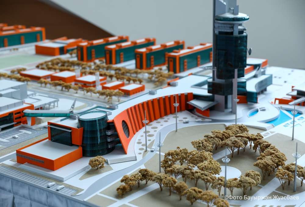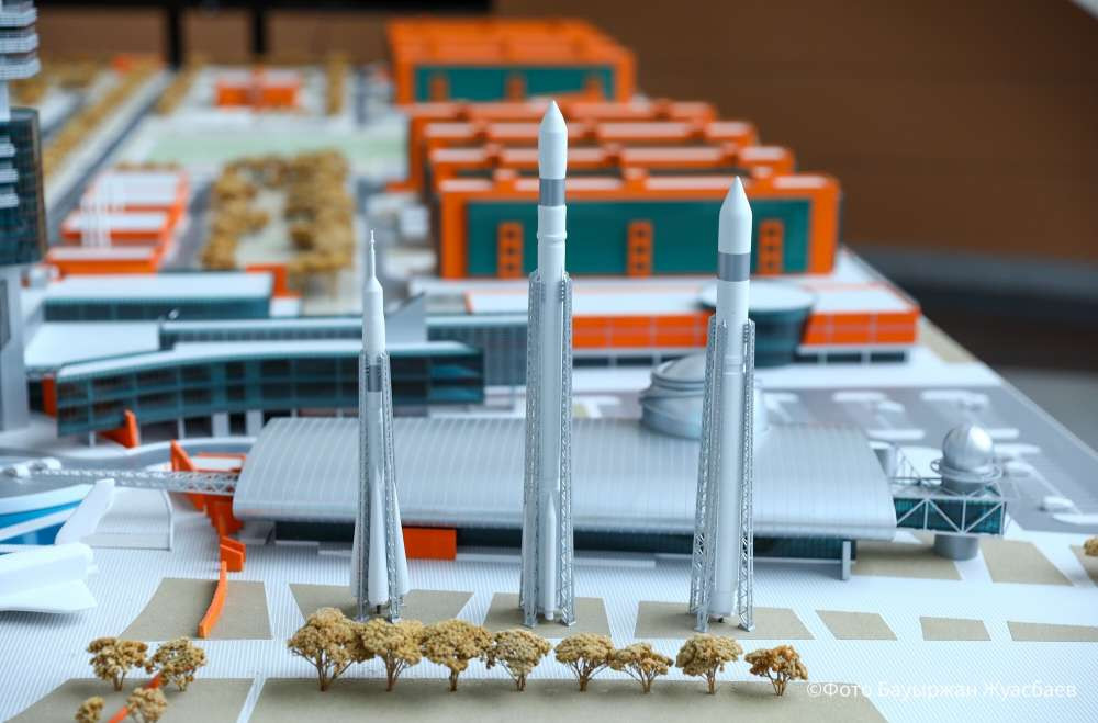Экскурсию по комплексу Национального космического центра (НКЦ) для нашего агентства начинает заместитель председателя Правления — член Правления по строительству и эксплуатации Рашит Абдразаков. Первое, что посетители видят в холле НКЦ — муляж всех объектов, которые находятся на территории центра: те самые три ракеты, но также и производственные объекты, административное здание, строящиеся музей космонавтики, гостиницы, жилые дома, школа, спортивный комплекс и торговый центр.