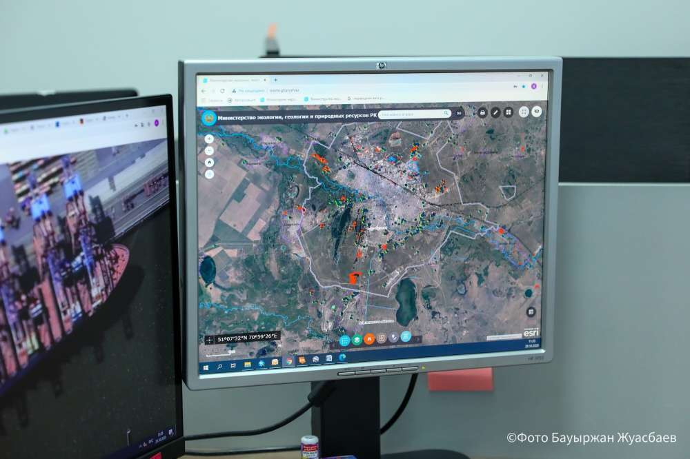 После этого мы перемещаемся в другой кабинет, где происходит космический мониторинг экологической ситуации. Миргали Сапаргалиевич напоминает, что недавно был большой резонанс по несанкционированным свалкам мусора. Работники этого отдела мониторят в том числе и такие темы.