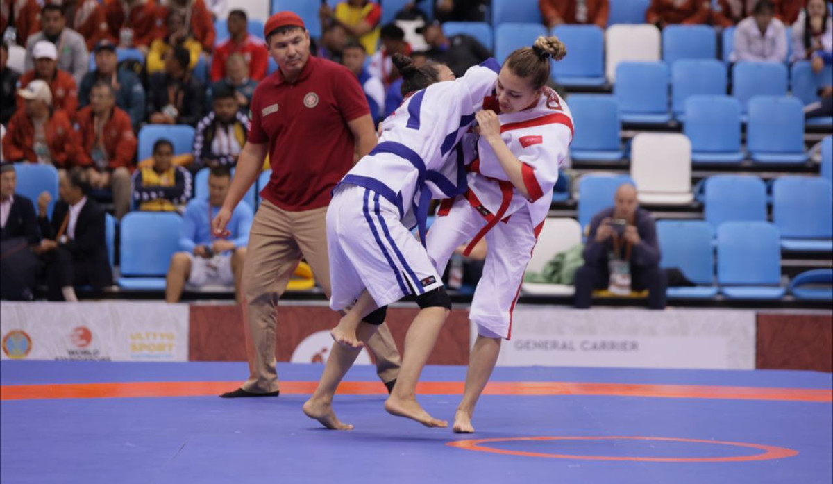 Айжан Жылкибаева поднялась на высшую ступень пьедестала. В финале соревнований по казакша курес в весовой категории до 48 килограммов она одержала чистую победу над Луизой Асакеевой из Кыргызстана.