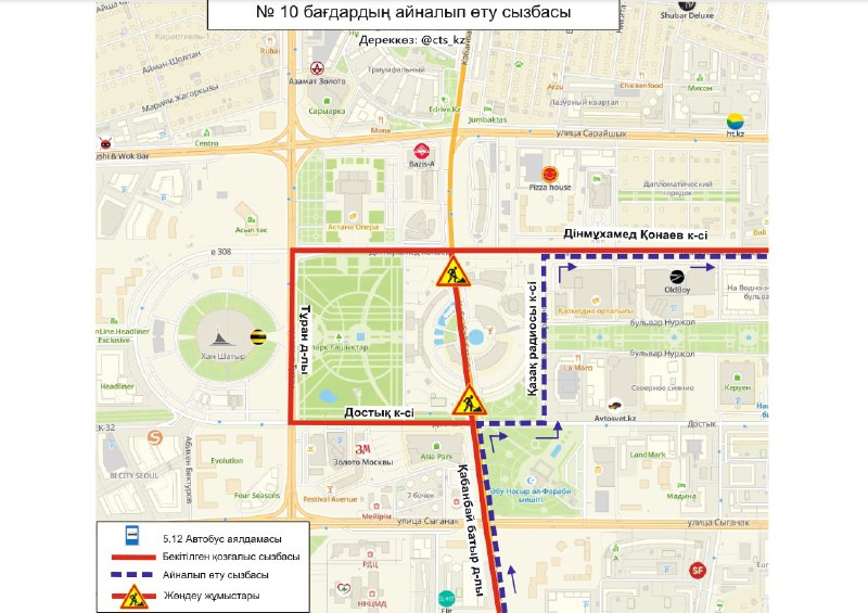 "До завершения ремонтных работ, временно изменены схемы движения маршрутов №№ 10, 29, 29А, 35, 36. Просим заранее планировать свой маршрут", - сообщили в ТОО "City Transportation Systems".
