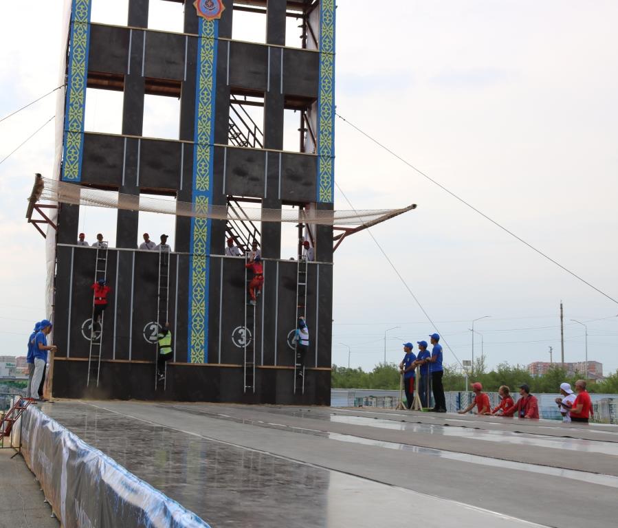 В Атырау прошел І этап республиканского чемпионата по пожарно-спасательному спорту по дисциплине «Подъем по штурмовой лестнице в окно второго этажа (женщины) и четвертого этажа учебной башни (мужчины)».