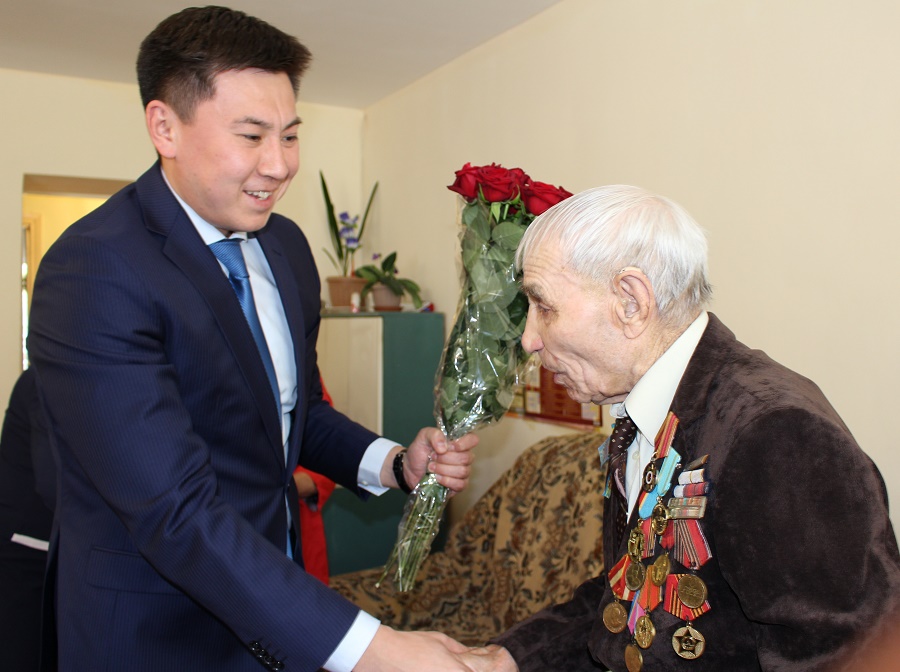 Накануне великого праздника аким города Степногорска Ануар Кумпекеев посетил ветерана Великой Отечественной войны Никандра Стрельникова и его супругу, поздравил их с наступающим Днем Победы.