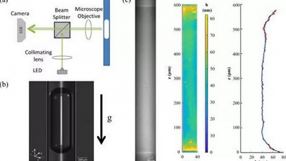 Размер пленки составил миллионные доли миллиметра. Чтобы выяснить это авторы исследования направляли свет на пузырек в трубке и, анализируя интерференцию (перераспределение интенсивности) между светом, отраженным от внутренней поверхности трубки, и светом, отраженным от поверхности пузырька, смогли очень точно измерить слой жидкости между пузырьком и трубкой.