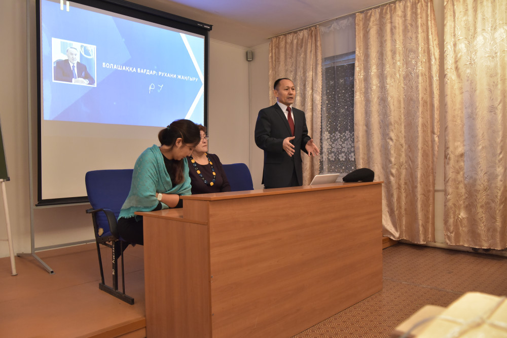 В программе плавы государства Казахстана Нурсултана Назарбаева «Рухани жанғыру – взгляд в будущее», направленная на модернизацию общественного сознания, сохранения и приумножения духовных и культурных ценностей — как одной из основных целей работы по программной статье является переход казахского языка на латинский алфавит.