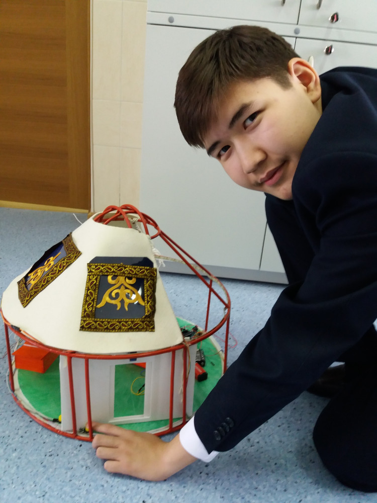 «Разрабатывая смарт-юрту, делая по ней научный проект, который, кстати, успешно защитил, я сохранил внешнее и внутреннее строение традиционной юрты наших предков и придал ей комфортности и коммуникабельности, - рассказал о своем изобретении Казбек. – Установил в своей юрте солнечные батареи, «умные» двери, которые раздвигаются по команде сами, сделал теплые полы. Моя основная идея при этом направлена на развитие этно- и экотуризма в Казахстане. Круглый год в такой удобной юрте можно в любом живописном местечке страны принимать гостей, и, я уверен, всем очень понравится пожить в переносном строении кочевых народов, но при этом иметь вполне современный комфорт».